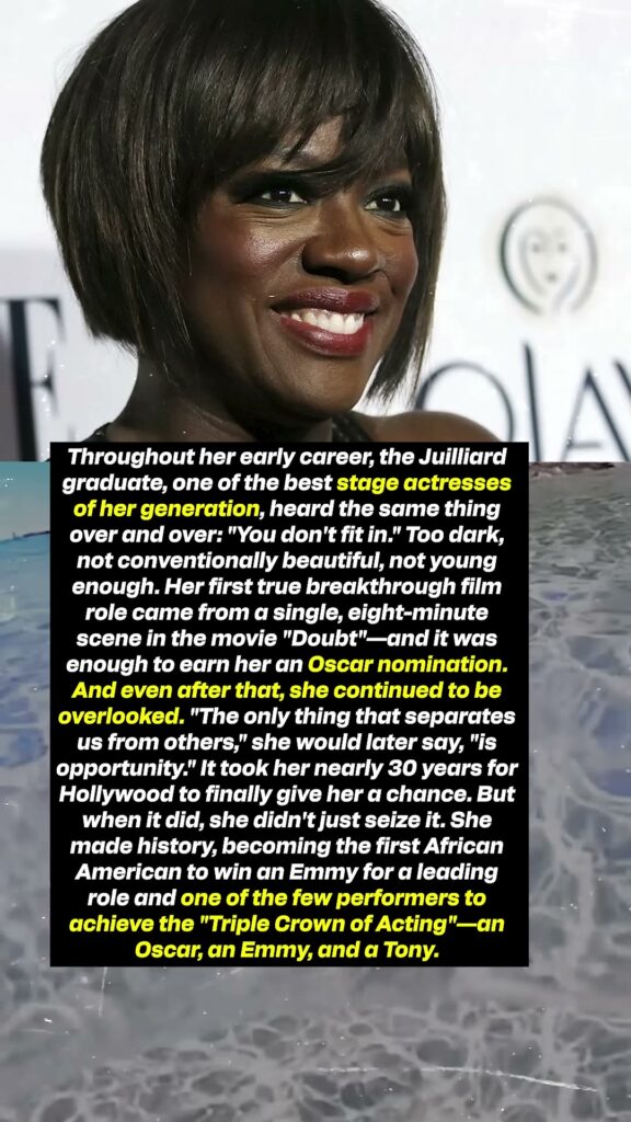 Viola Davis’s journey to becoming one of the most decorated actors in history was paved with rejection, resilience, and raw brilliance. A Juilliard-trained performer, Davis was long hailed as one of the finest stage actresses of her generation. Yet in Hollywood, she was told she didn’t “fit in.” She was deemed too dark-skinned, not young enough, not conventionally beautiful. These judgments weren’t just personal—they were systemic, reflecting an industry slow to embrace Black women in complex, leading roles.