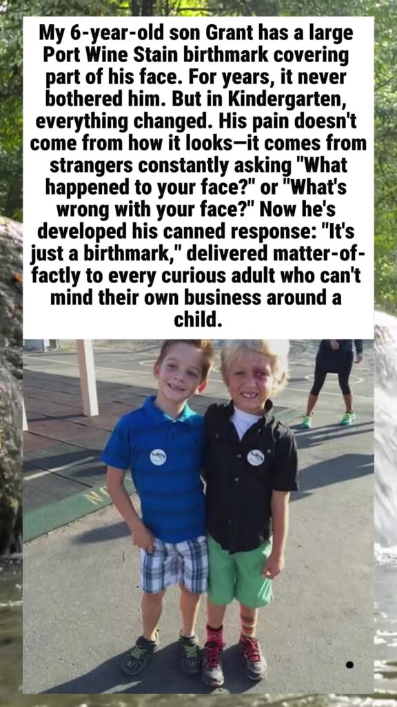 But when Grant entered Kindergarten, the world began to respond differently. Adults—strangers—started asking invasive questions: “What happened to your face?” “Is something wrong?” These comments weren’t malicious, but they were constant, and they chipped away at Grant’s sense of normalcy. His pain didn’t come from the birthmark itself—it came from being treated like he was different.