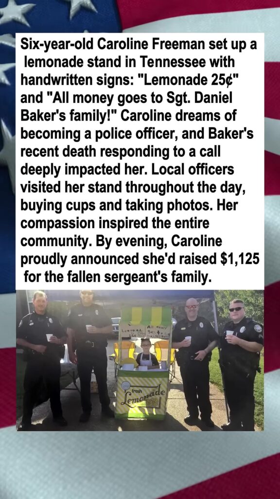 In Mt. Juliet, Tennessee, a six-year-old girl named Caroline Freeman turned a simple lemonade stand into a powerful act of kindness. After learning about the tragic death of Sgt. Daniel Baker—an officer killed in the line of duty on May 30—Caroline felt compelled to help. She didn’t have much, but she had heart, determination, and a dream of becoming a police officer herself.