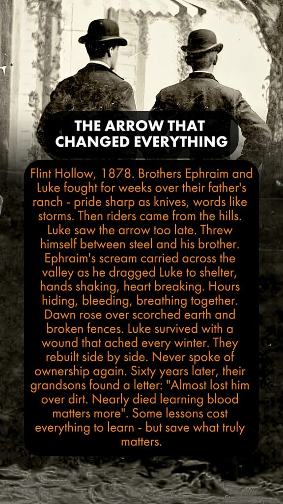 Flint Hollow, 1878. Brothers Ephraim and Luke fought for weeks over their father’s ranch—pride sharp as knives, words like storms.