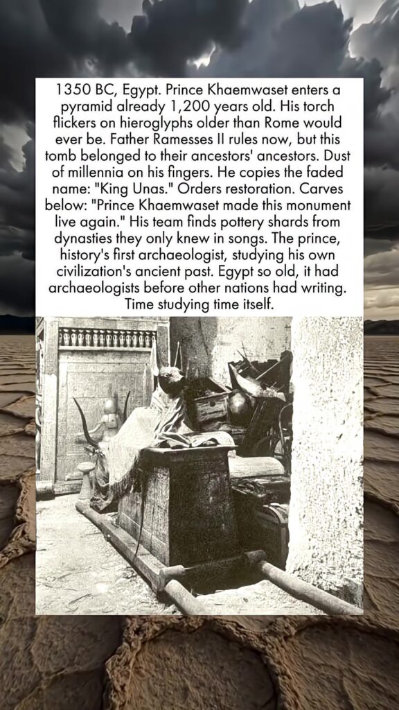 1350 BC, Egypt. Prince Khaemwaset enters a pyramid already 1,200 years old. His torch flickers on hieroglyphs older than Rome would ever be.