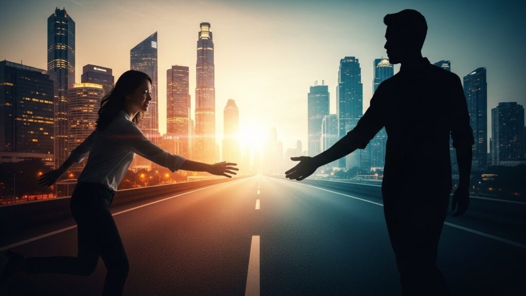 He: “I did — for a while. But I want a family. Kids. A wife who’s here for bedtime stories, not FaceTiming from another state.”