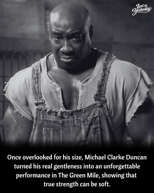 When Michael was cast in The Green Mile, the role didn’t ask him to pretend. It asked him to open himself. Scene after scene, the tears came. His hands shook. His voice cracked. None of it was manufactured. He was drawing from years of being judged, overlooked, and misunderstood. John Coffey was feared in the story. Labeled a monster. Michael understood that pain intimately. He knew what it felt like to be seen as dangerous when all you wanted was to help. To heal. To carry pain so others didn’t have to. He once said real strength isn’t about striking back. Sometimes it’s about standing still. About refusing to let the world harden you, no matter how many times it tries. When Michael Clarke Duncan passed away in 2012, people spoke about his size. His voice. His unforgettable presence. But what they truly grieved was quieter. His gentleness. His openness. His courage to remain soft in a world that rarely rewards it. Because sometimes the strongest men are not the loudest. Sometimes they listen the most. Feel the deepest. Heal the quietest. And sometimes, a giant doesn’t need to roar at all. He just needs to be seen.