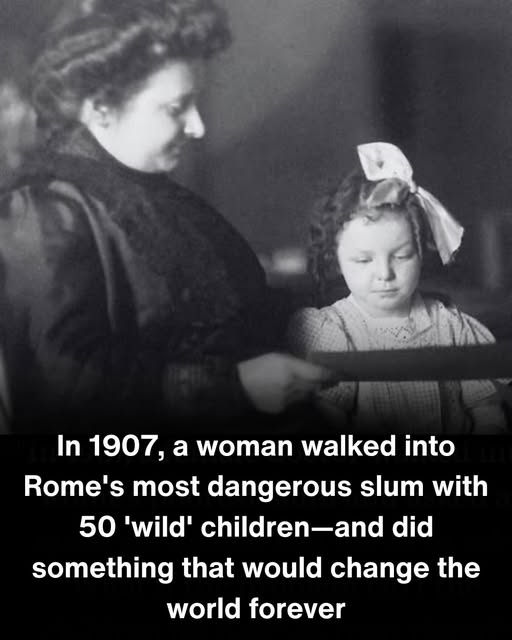 January 6, 1907. The Italian government came to her with a problem. In San Lorenzoâone of Rome’s most dangerous slumsâfifty children aged 2-7 were running wild while their parents worked in factories. No school. No supervision. Nothing.