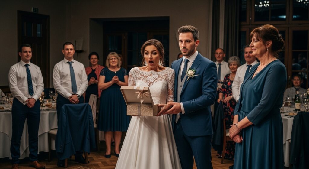 At the reception, when it was time for gifts, I asked the staff to bring out a large box addressed to the happy couple.