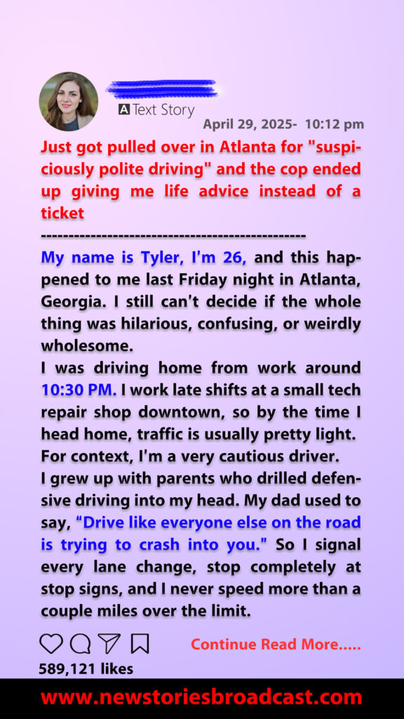 Just got pulled over in Atlanta for “suspiciously polite driving” and the cop ended up giving me life advice instead of a ticket