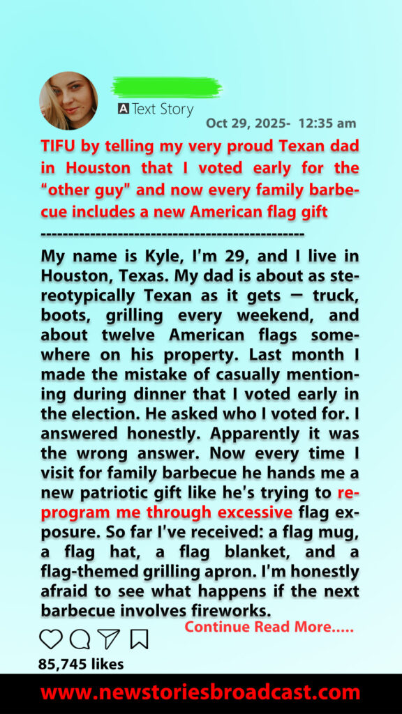 TIFU by telling my very proud Texan dad in Houston that I voted early for the “other guy” and now every family barbecue includes a new American flag gift