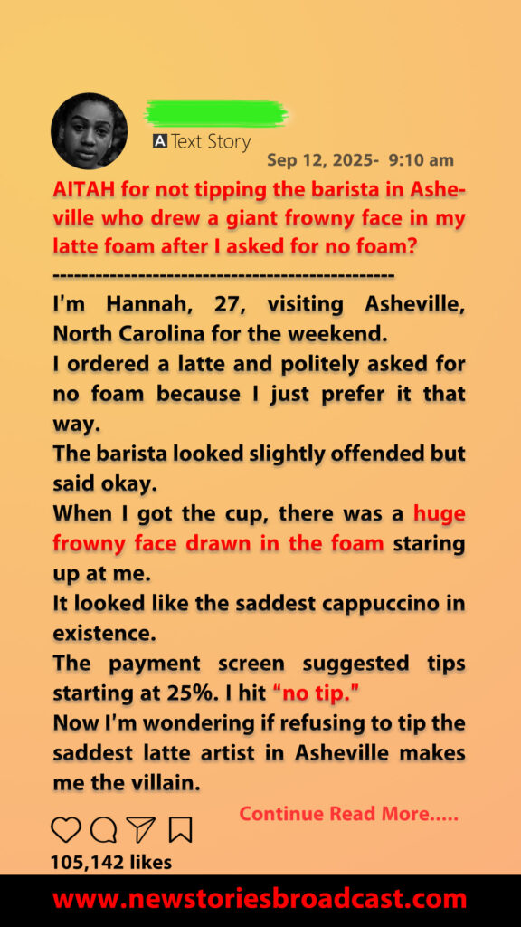 My name is Hannah, Iâm 27, and this happened during a weekend trip to Asheville, North Carolina. I had heard great things about the coffee scene there, so one morning I decided to stop by a small local cafĂ© that everyone online seemed to love.
