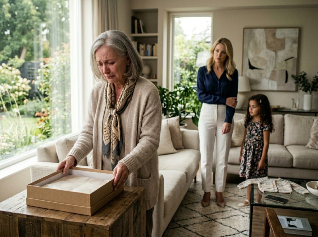 The knock when it came was softer than I expected — three hesitant raps instead of the impatient pounding I had imagined. When I opened the door, cold air rushed in carrying flakes of snow that melted instantly on the warm floor. There they stood: my son in his crisp coat, face pale and eyes hollow from sleepless nights; my daughter-in-law beside him, makeup imperfect for the first time in years, arms wrapped tightly around herself as if the boutique coat she wore could no longer protect her from the cold she had invited into their lives. And between them, holding her mother’s hand with one small mitten while clutching a familiar box with the other, was my granddaughter — cheeks flushed pink from the winter air, eyes wide with the same innocent confusion I had seen that day in their living room.