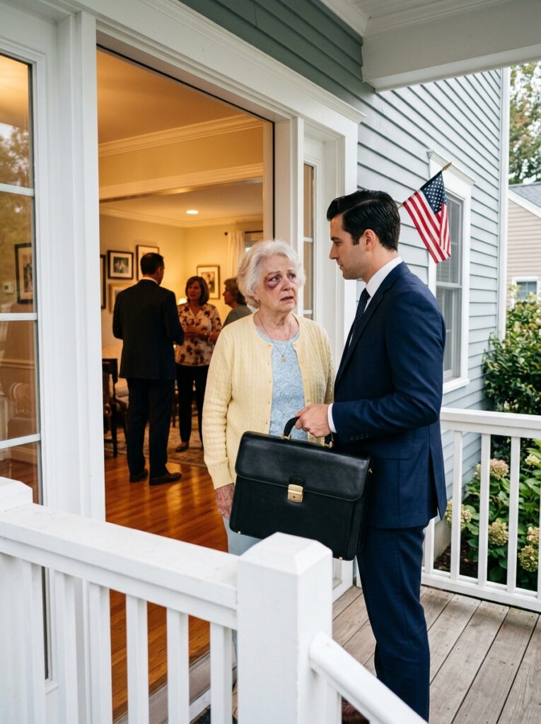 At 9:00 a.m. sharp the next morning, the doorbell rang. My son looked up from his phone, confused. “Are you expecting someone?” I set my coffee cup down, pushed back my chair, and stood with the straight, commanding posture that had once directed entire fleets. “Yes,” I said calmly. “I am.” When I opened the door, three people stepped inside — the high-powered attorney I had taken in as a lost young man, the investigative journalist whose mother I had cared for, and the financial investigator who had eaten at my table almost every night. They carried folders thick with evidence, their expressions professional and unyielding. My son’s face went pale as the attorney handed him legal documents. “Mr. Voss, we represent your mother, Rear Admiral Elena Voss. You have been served. This includes a protective order, demand for repayment of all funds transferred under duress, and initiation of elder abuse charges.” Sloan dropped her yogurt spoon, her flawless makeup unable to hide the sudden fear in her eyes.