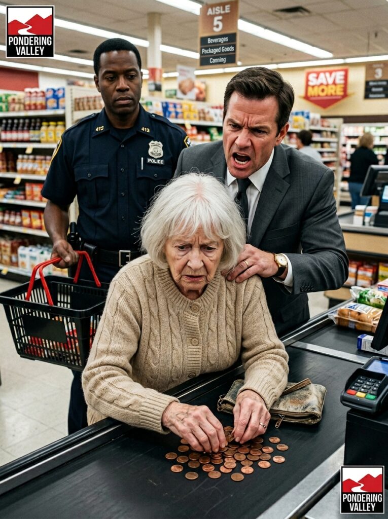 “Could you possibly move any slower? Some of us actually have important places to be.” The wealthy man’s loud, mocking voice cut through the grocery store aisle like a whip as I stood at the checkout counting pennies from my worn coin purse, my face burning with humiliation under the harsh fluorescent lights while other shoppers glanced away or smirked. The broke old woman they all saw — the one moving too slowly, counting every cent with trembling hands, the one the rich man loudly ridiculed for holding up the line — was never weak or insignificant. She was Rear Admiral Elena Voss, four-star general of the United States Navy, former Supreme Commander of Allied Forces in the Pacific — a woman who had spent thirty years leading black operations that rescued the vulnerable and protected the innocent with cold, surgical precision. The massive authority she had deliberately kept hidden beneath layers of quiet civilian retirement and modest living was now awakening with ferocious intensity, cold, precise, and utterly unstoppable. Because while the wealthy man continued his loud tirade and the cashier looked embarrassed, the police officer standing directly behind him — the one who owed the old woman his life from a classified rescue operation decades ago — stepped forward, and the man who thought he was mocking a helpless stranger had no idea that the “broke old woman” he had just humiliated was the one person capable of ending his comfortable world with a single, calm word.”