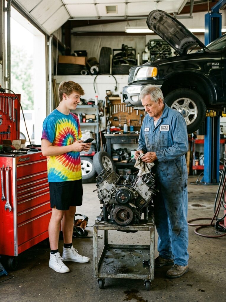 I kept the rusted engine block on a shelf in the garage as a reminder that some of the most important lessons come from the things people dismiss as junk. My days remained simple — fixing cars for neighbors, mentoring young people who needed direction, and spending quiet evenings with a cup of coffee and the satisfaction of honest work. The shop that had once been called a museum became a place where teenagers learned respect, responsibility, and the value of patience.