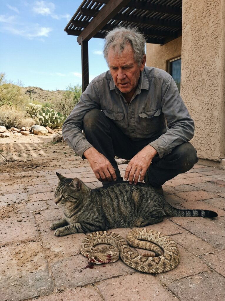 Three years had passed since that tense afternoon when the neighborhood association demanded I remove the “dangerous” one-eared stray cat under my porch and threatened me with $100 daily fines. The exhausted grandmother who had been publicly shamed and financially threatened for sheltering the ragged hero that had taken a deadly rattlesnake bite to save her two-year-old grandson was gone forever. In her place stood Rear Admiral Elena Voss — retired from active command, but never retired from the quiet, fierce strength that protected her family. The fines were dropped within hours. The association was forced to issue a public apology to the entire street, acknowledging the cat’s heroic act and my right to shelter him. Mandatory community workshops on animal welfare and empathy were implemented, and the president who had led the charge against the stray quietly resigned. The one-eared cat, now named Hero by the neighborhood children, lives freely under my porch and in my home, hopping proudly with his battle-scarred dignity. My grandson, now five years old, calls him “my brave cat” and tells everyone how Hero saved his life.