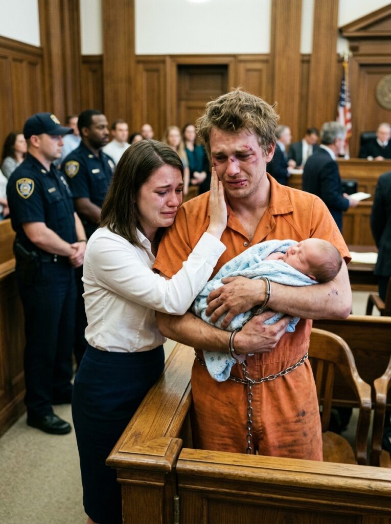 Clara leaned in carefully and placed little Leo into his father’s cuffed hands.