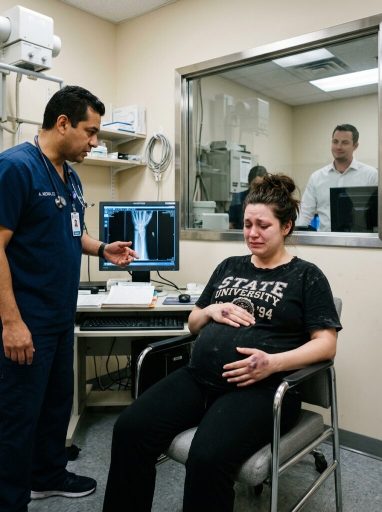 Mateo worked gently. When the X-ray image appeared, his hands went still. He looked at the break, at the fresh purple fingerprint bruises on my arm, and at my full name on the chart.