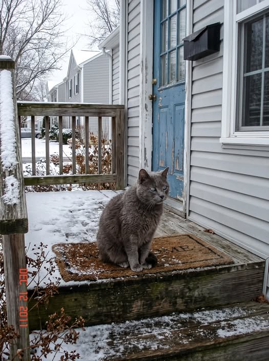 He sat there like a small, gray statue, dull eyes fixed on my front door with a patience that felt almost accusatory. Thin, scarred, one ear torn, he never meowed loudly or scratched at the screen. He simply waited — rain or shine — as if someone inside had made a promise they hadn’t kept.