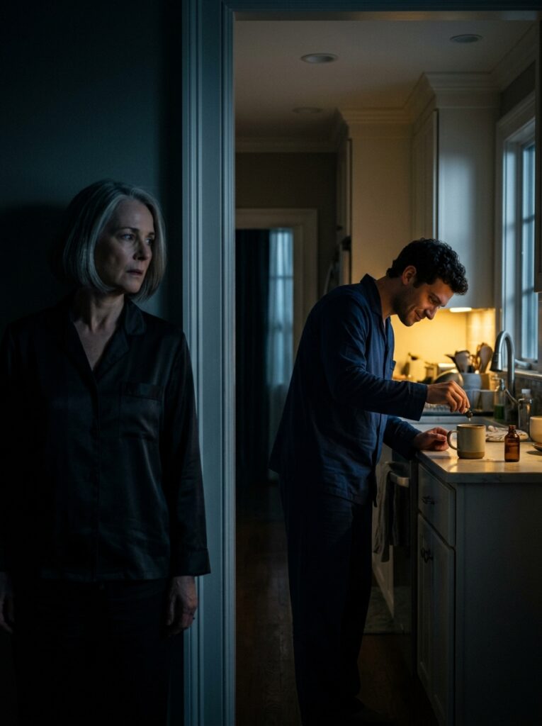 He poured warm water into my usual glass, opened a hidden drawer, and took out a small amber vial. He carefully counted three drops of a clear liquid into the water, stirred in the honey and chamomile, and smiled to himself.