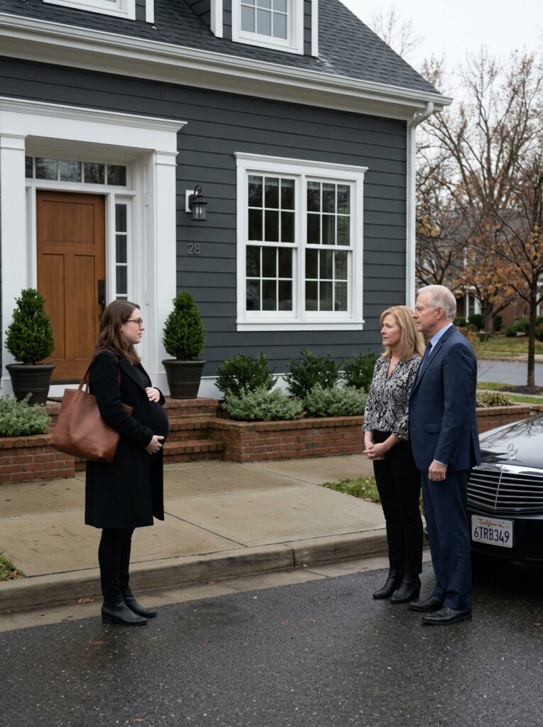 By 9:15 that night, I was standing on the porch with one suitcase while rain moved across the streetlights in silver lines. My mother pointed toward the steps. My brother and sister watched from the upstairs window. My father had paperwork drafted within days—formal documents stating I had no claim on the family, and neither did any child born to me.
