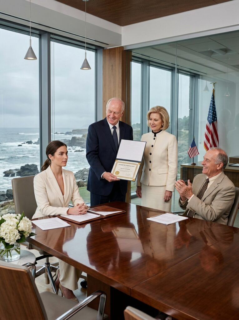 She sat less than three feet from me in my uncle’s boardroom in Ravenport, Massachusetts, wearing money the way some women wear apology—expensively, and without meaning it. Blonde hair perfectly set. Pale polished nails. A face softened by maintenance, not regret. Outside the floor-to-ceiling windows, the Atlantic was hammering the rocks below. Inside, the room smelled like polished wood, cold air, and the kind of silence that makes every careless word feel expensive.