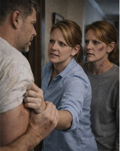 She looked thinner than I remembered. Smaller somehow. Her shoulders curved inward like she was trying to apologize for taking up space. It was June, hot enough to make the walls sweat, but her blouse was buttoned all the way to the neck. Makeup tried and failed to hide a bruise across her cheekbone.