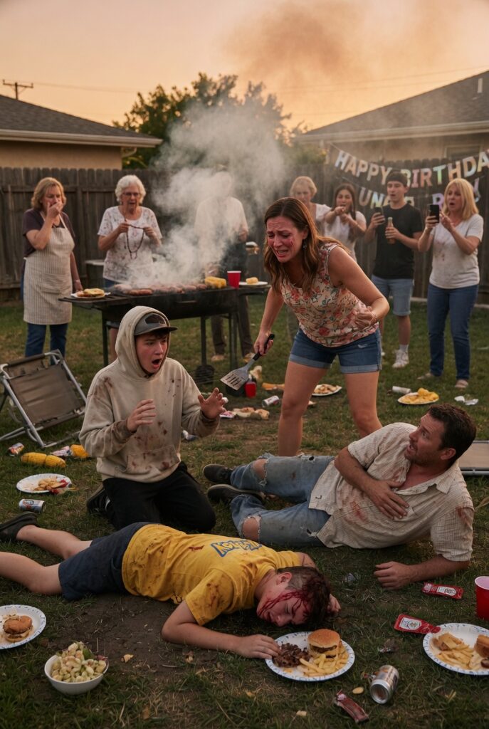 The backyard exploded again — this time with shouts, gasps, and people rushing forward.
